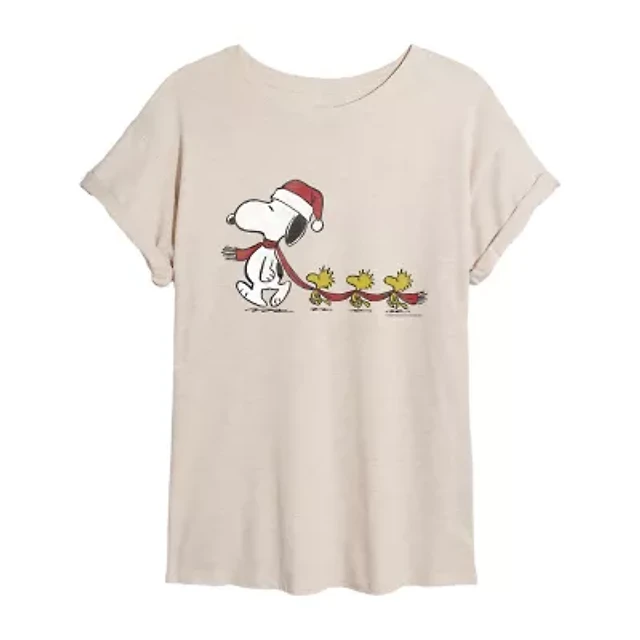 Peants Snoopy And Woodstock Scarf Tee Womens Crew Neck Short Sleeve Graphic T-Shirt
