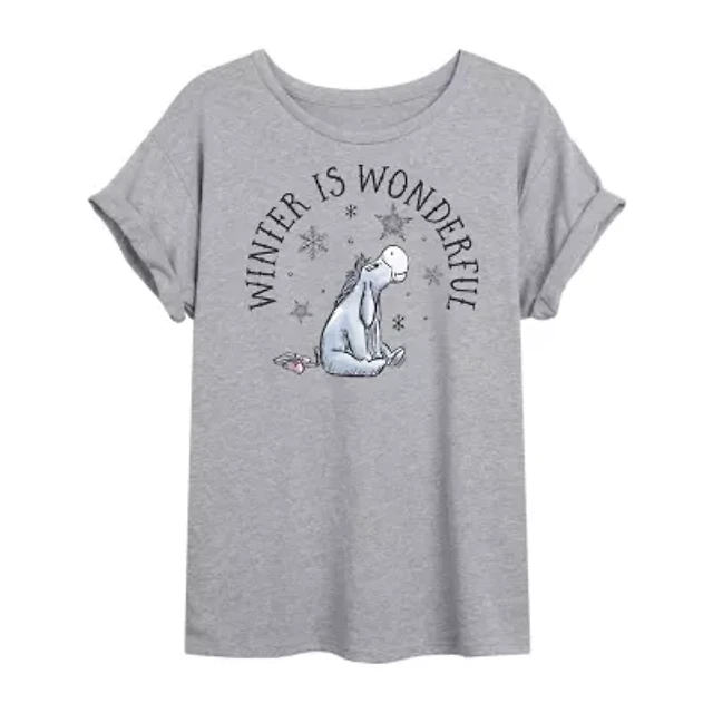 Winne The Pooh Eeyore Winter Tee Womens Crew Neck Short Sleeve Winnie Graphic T-Shirt