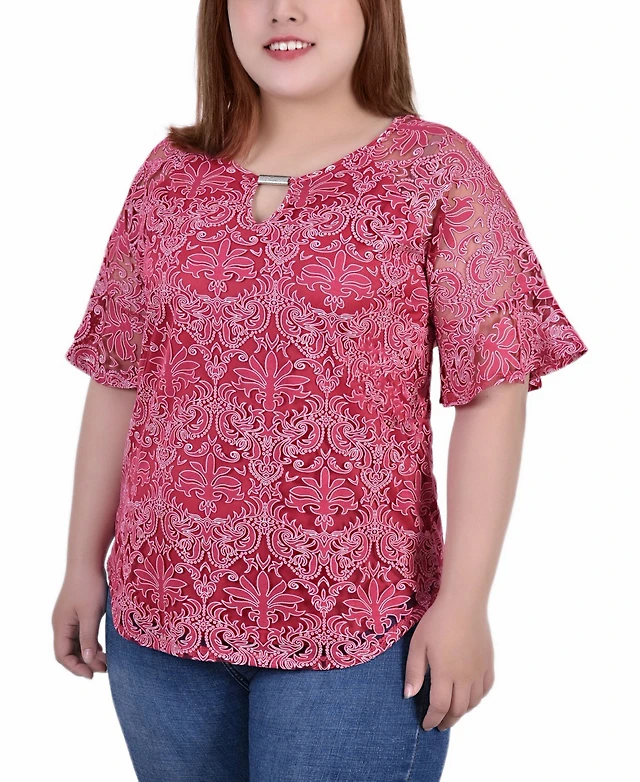 Ny Collection Women's Mesh Sleeve Top