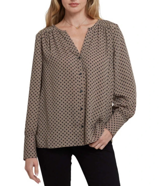 NYDJ Woven Printed Split V-Neck 3/4 Sleeve Button Front Blouse