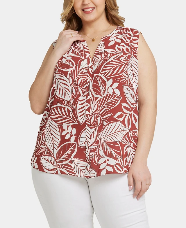 Nydj Plus Sleeveless Pintuck Split Neck Top