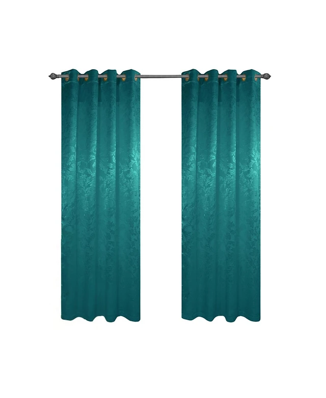 Olivia Gray 100% Polyester 200 Gsm Dyson Embossed Blackout Grommet Curtain Panel 54" x 90" Teal