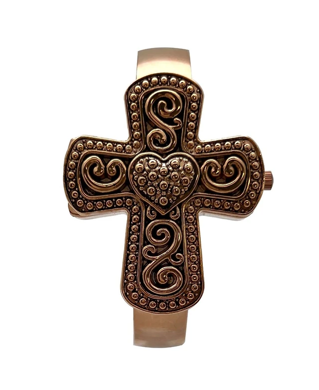 Olivia Pratt Rose Gold Elegant Flower Detailed Face Bangle Women Watch