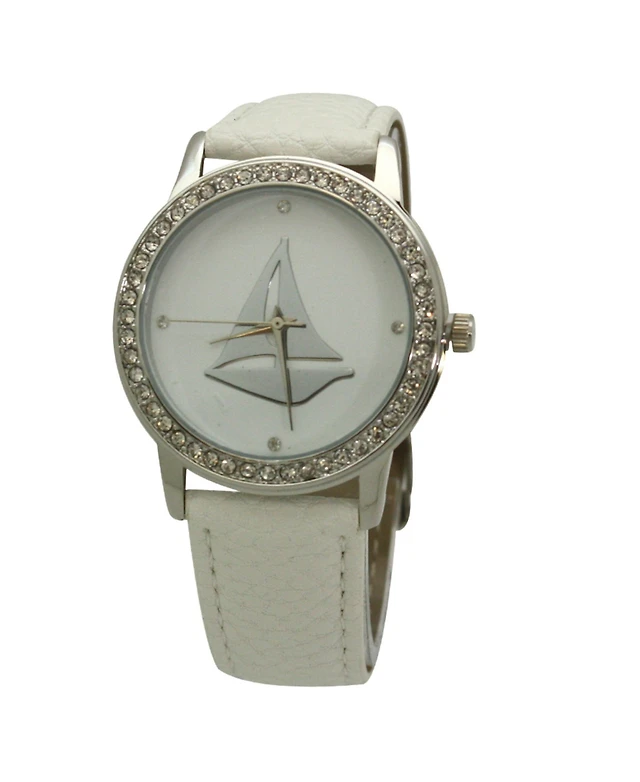 Pink Classic Style Sailboat Leather Strap Watch