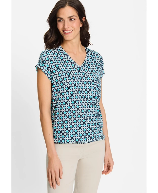 Olsen Women's Split Neck T-Shirt with Embroidery