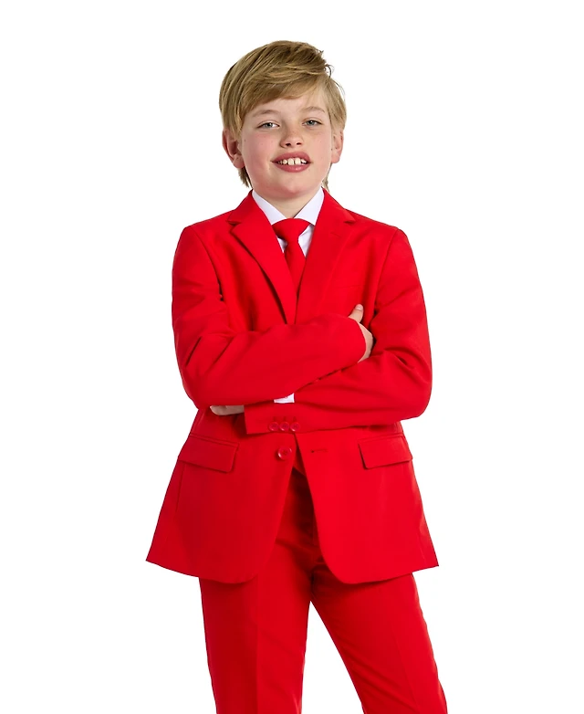 OppoSuits Big Boys Blazing Solid Color Suit, 3-Piece Set Including Blazer, Pants and Clip-On-Tie