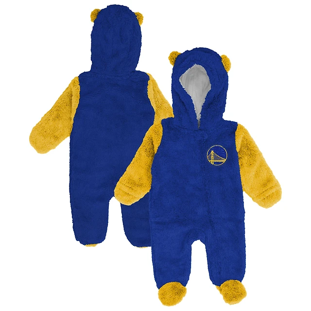 Infant & Newborn Outerstuff Royal Golden State Warriors Stay Napping Fleece Bunting Full-Zip Hooded Sleeper