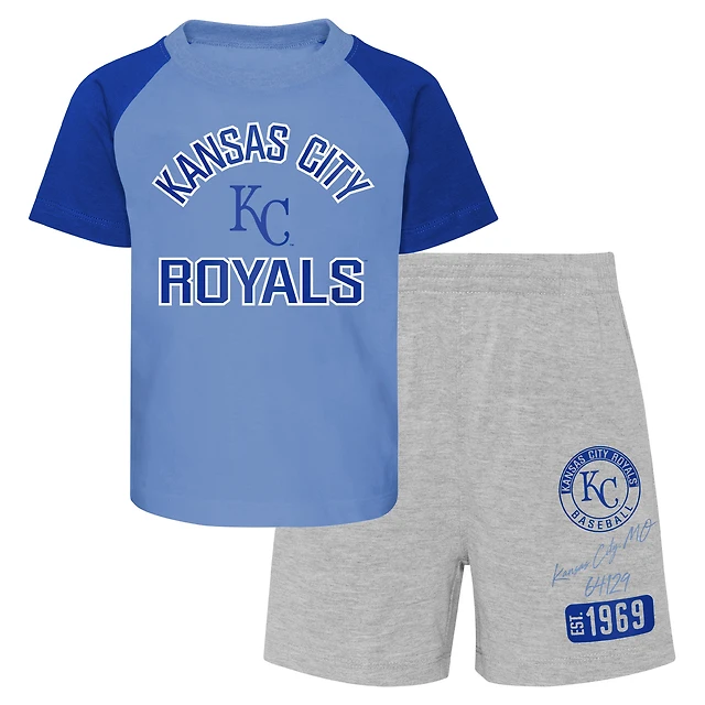 Infant Light Blue/Heather Gray Kansas City Royals Ground Out Baller Raglan T-Shirt and Shorts Set