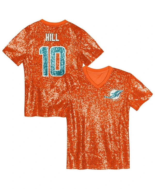 Outerstuff Big Girls Tyreek Hill Orange Miami Dolphins Sequin V-Neck Fashion Jersey