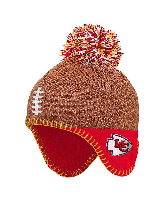 Outerstuff Baby Boys and Girls Brown Kansas City Chiefs Football Head Knit Hat with Pom