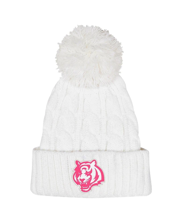 Outerstuff Big Girls White Cincinnati Bengals Cable Cuffed with Pom Knit Hat