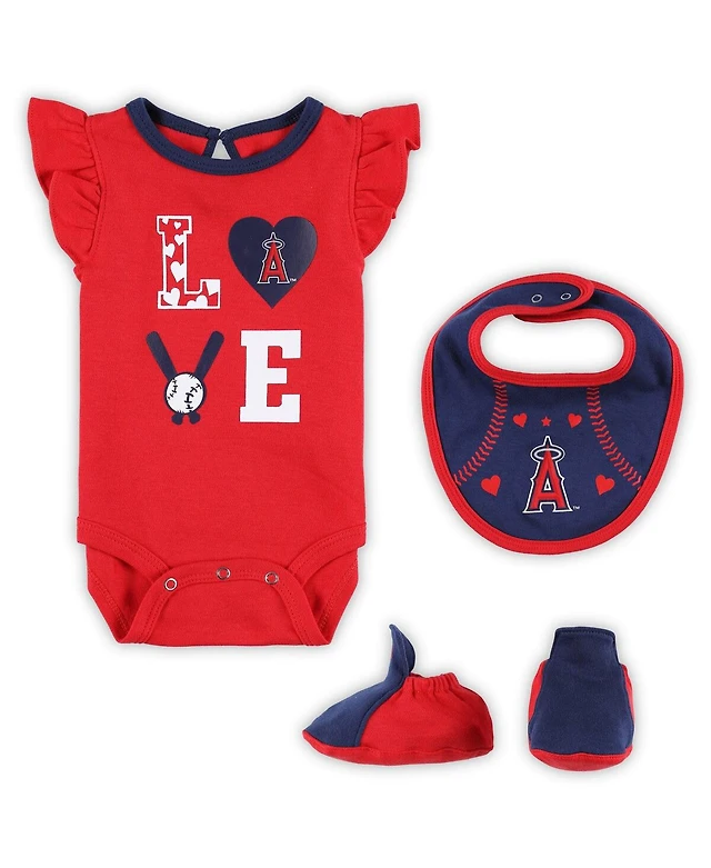 Baby Boys and Girls Red, Navy Los Angeles Angels Three-Piece Love of Baseball Bib Bodysuit Booties Set