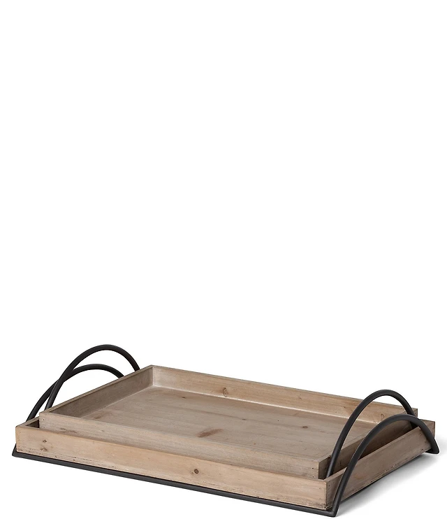 Park Hill Wood Trays with Iron Handle, Set of 2