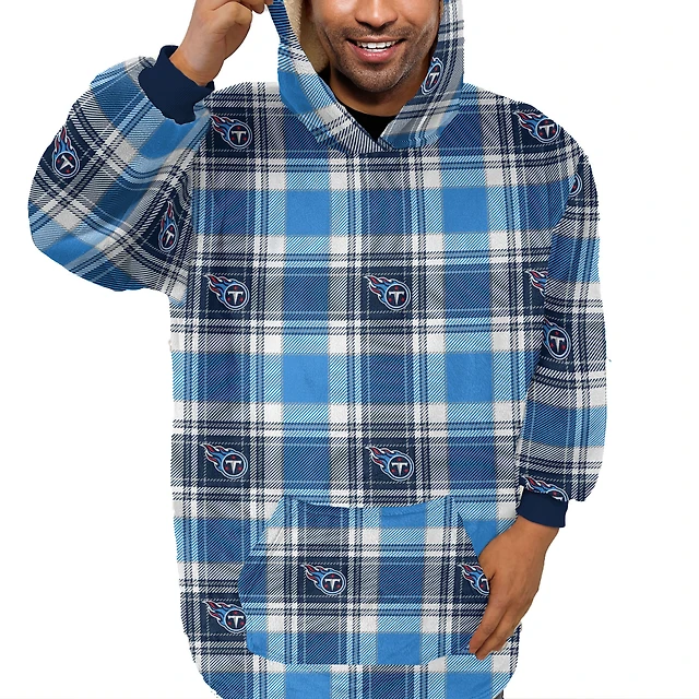 Pegasus Tennessee Titans Plaid Logo Box Bloncho with Sherpa Inside