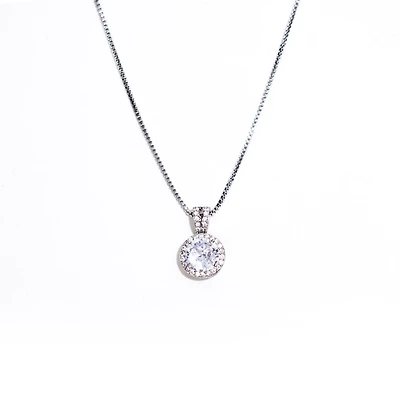 Silver Plated CZ Brilliant Cut Pendant Necklace
