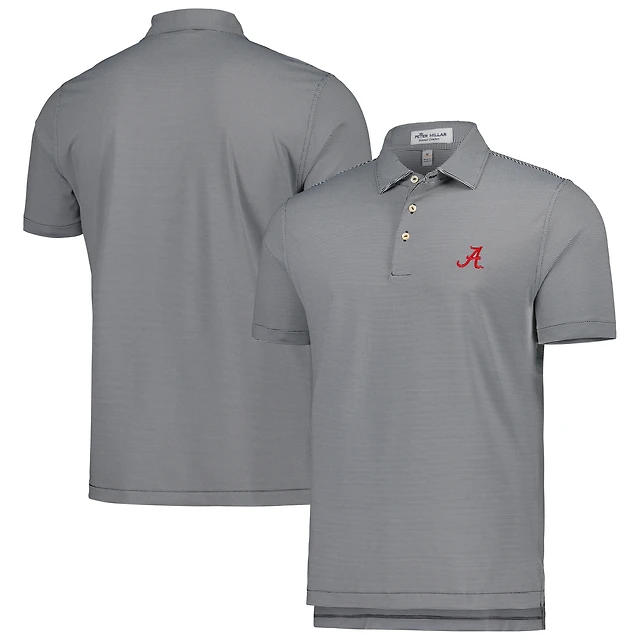 Men's Peter Millar Black Alabama Crimson Tide Jubilee Striped Performance Jersey Polo