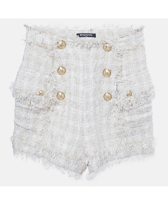 Pre-Owned Balmain Women's Cream Tweed Raw Edge Detail Shorts