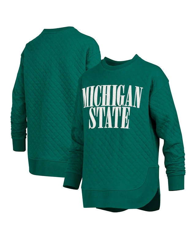 Pressbox Women's Green Michigan State Spartans Quilted Long Sleeve Pullover Sweatshirt