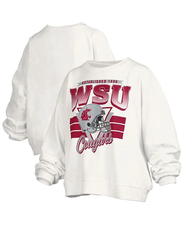 Pressbox Women's White Washington State Cougars Oversized Janice Retro Waist-Length Pullover Sweatshirt
