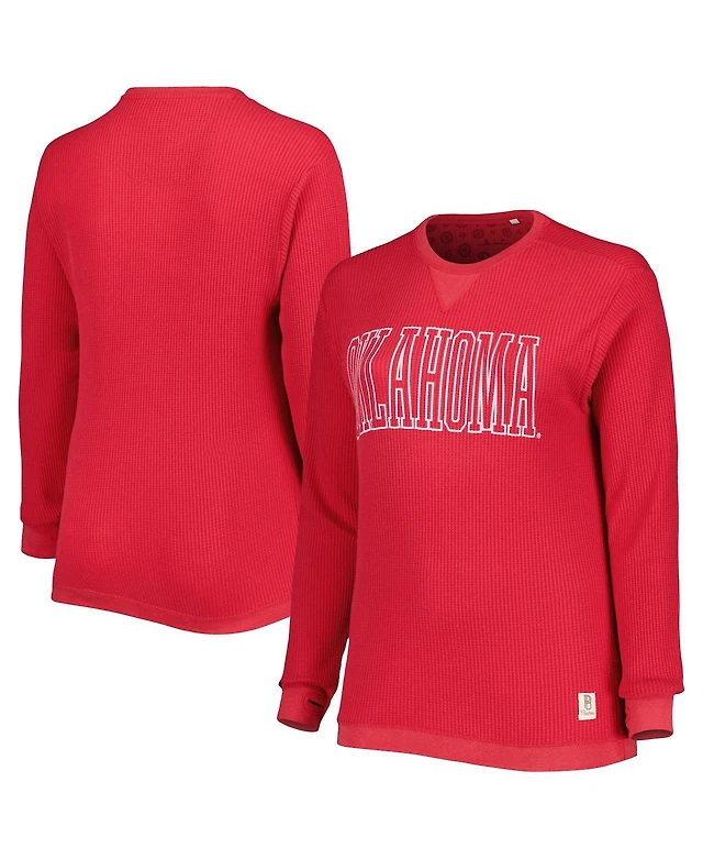 Women's Pressbox Crimson Oklahoma Sooners Surf Southlawn Waffle-Knit Thermal Tri-Blend Long Sleeve T-shirt
