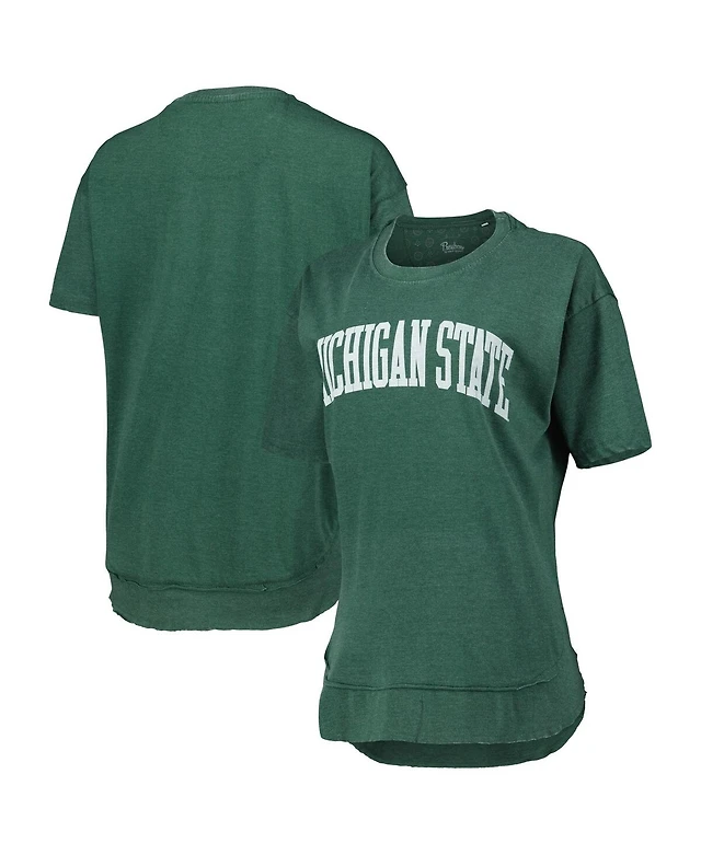 Women's Pressbox Heathered Green Distressed Michigan State Spartans Arch Poncho T-shirt