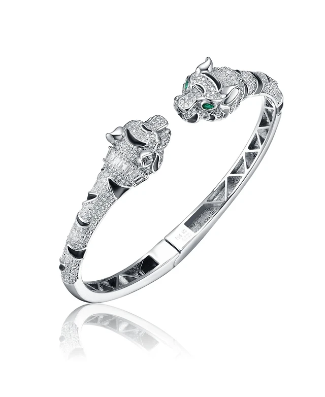 Rachel Glauber 14k Gold Plated with Green & Cubic Zirconia Wild Cat Door Knocker Bangle Bracelet