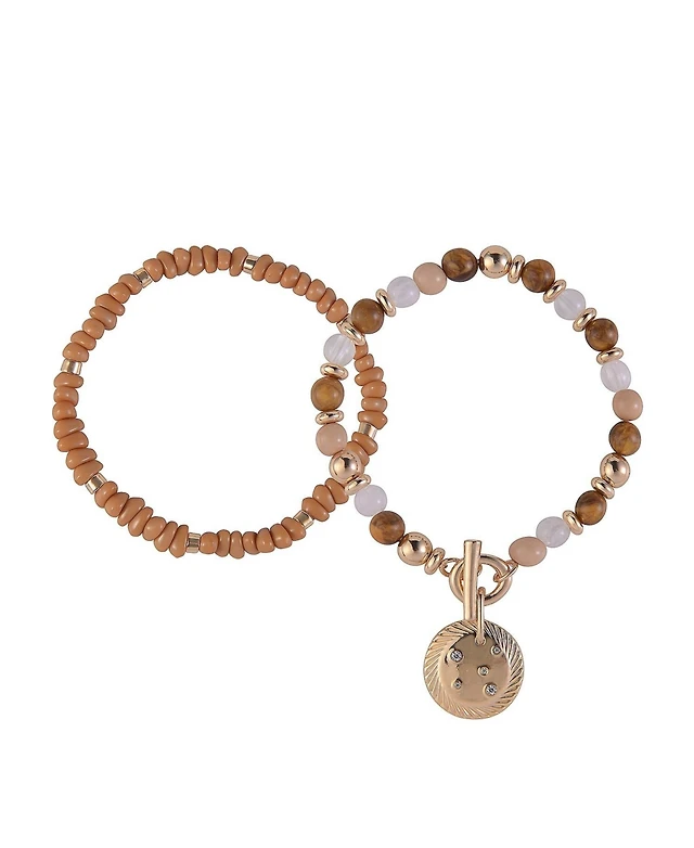 Rachel Rachel Roy Gold Tone and Brown Beaded 2pc Bracelet Set