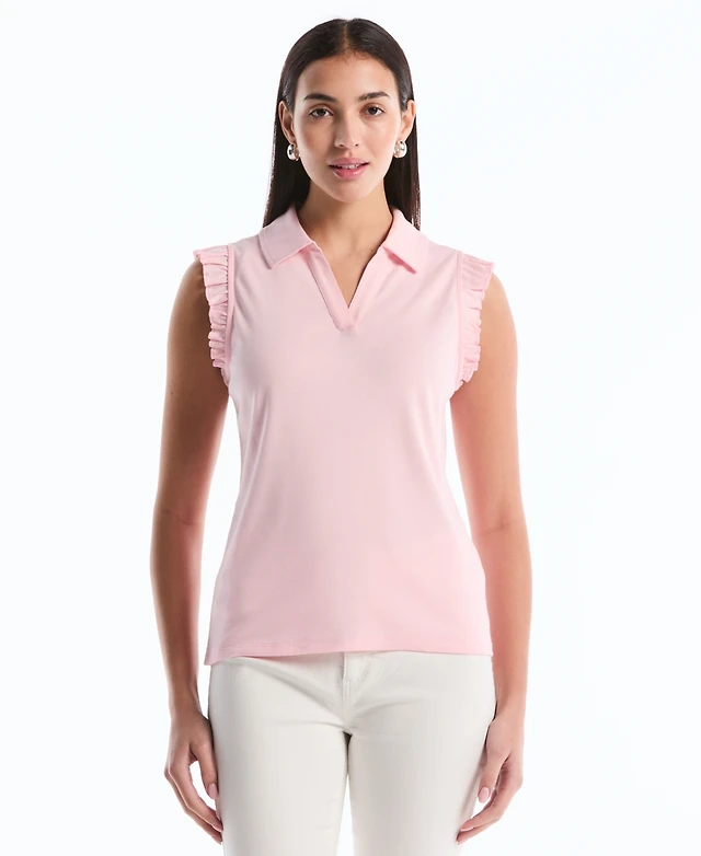 Rafaella Petite Ruffle Sleeveless Polo Shirt