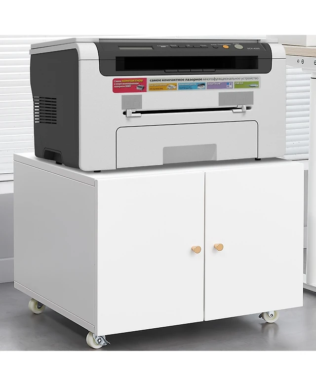 Rainsken File Cabinet on Wheels, Mobile Metal Printer Stand with 2 Doors and Adjustable Shelf for Home Office