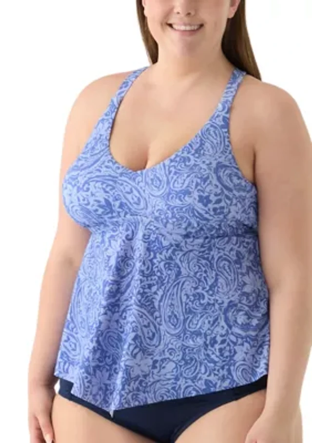 Raisins Curve Womens Plus Size Shoreline Tankini Top Full Coverage Bottoms