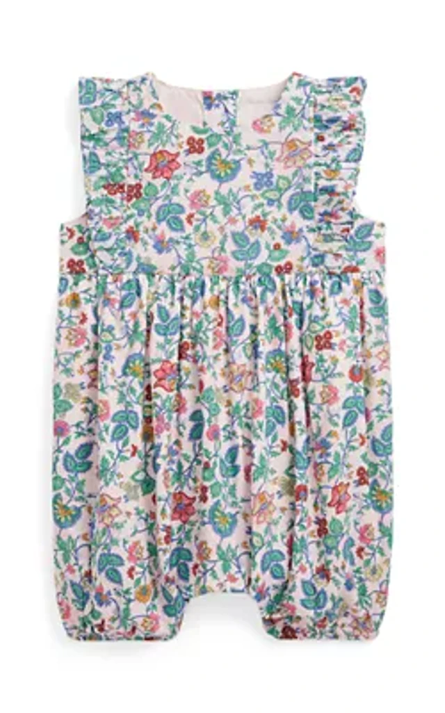 Baby Girls Floral Cotton Interlock Footed Coverall