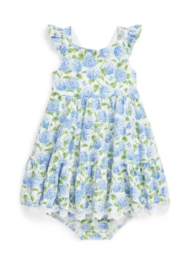 Baby Girls Floral Cotton Mesh Dress & Bloomer