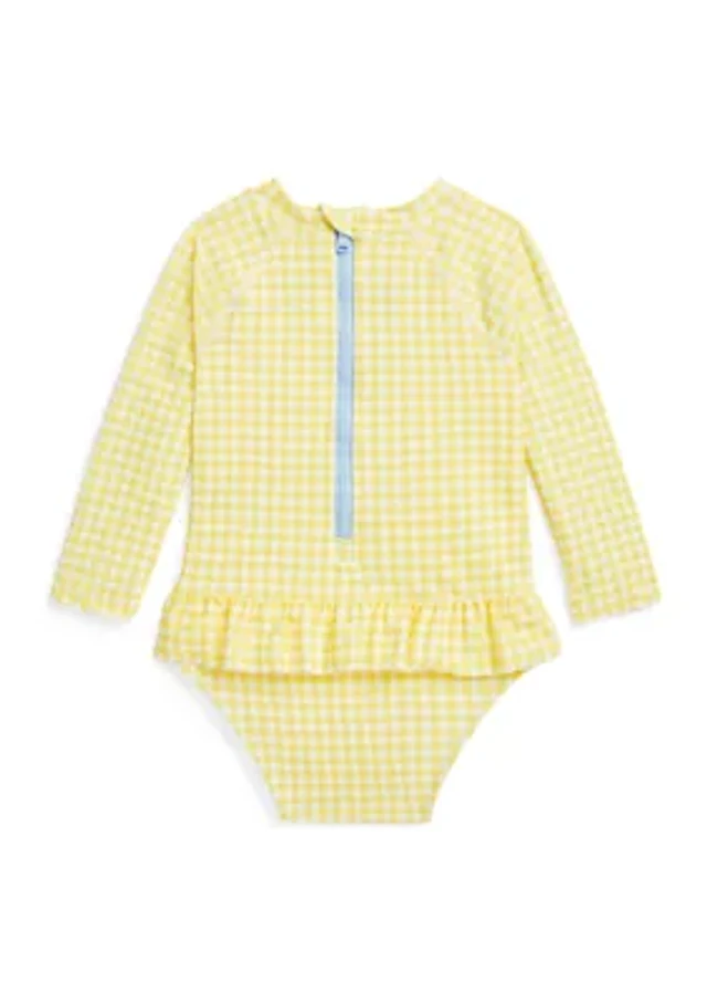 Baby Girls Gingham Ruffled One Piece Rash Guard