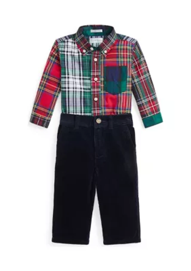 Baby Boys Plaid Cotton Shirt & Corduroy Pant Set