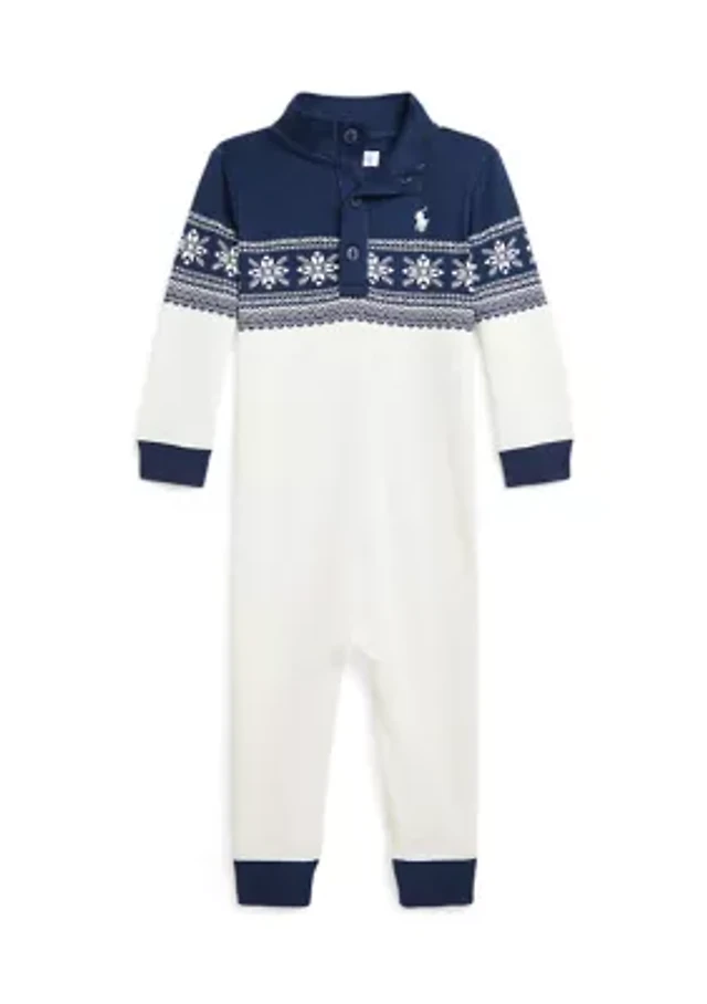 Baby Boys Elk-Print Fleece Coverall