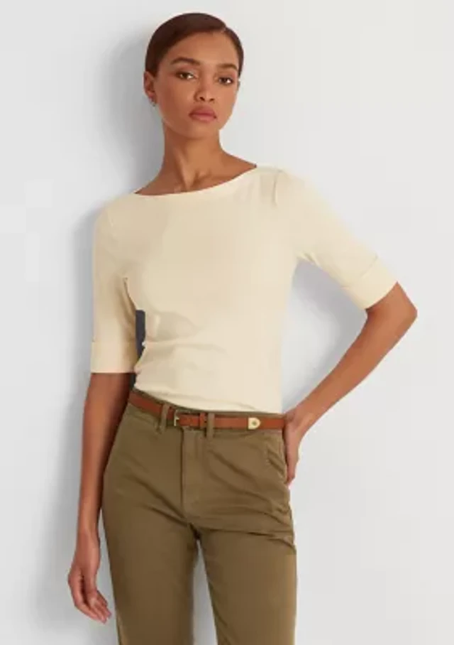 Women's Striped Stretch Cotton Boat Neck T-Shirt