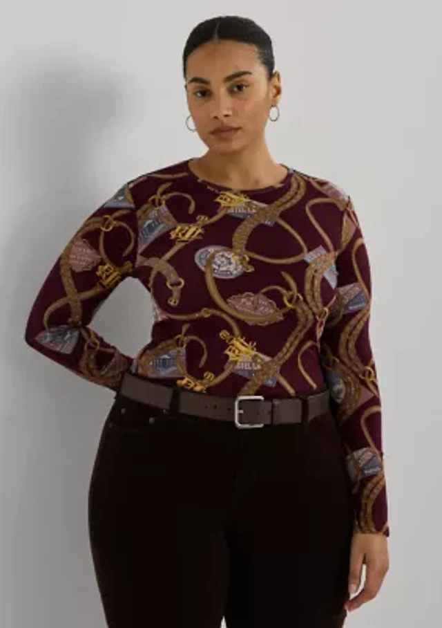 Plus-Size Geo-Print Satin Shantung Wide-Leg Pants