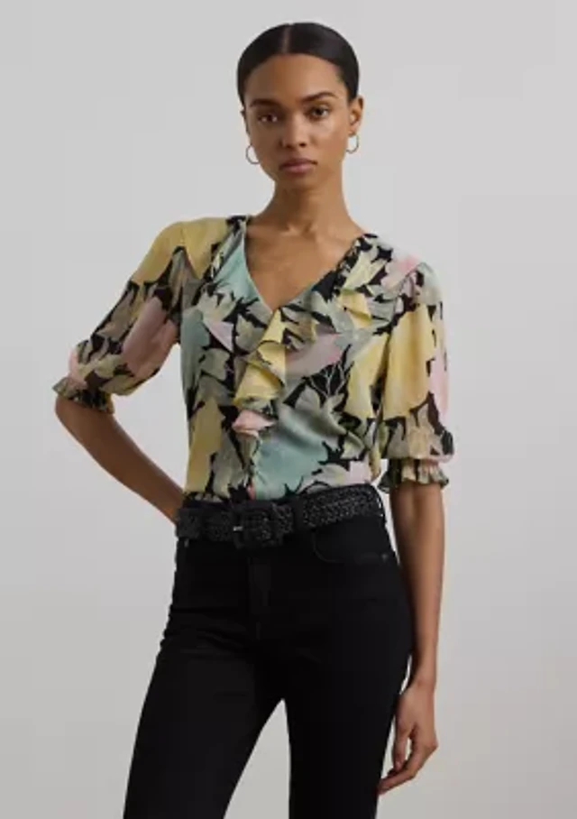 Plus Flutter Sleeve Ruffle V-Neck Gown
