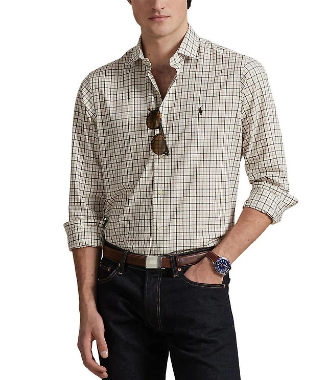 Polo Ralph Lauren Classic Fit Plaid Stretch Poplin Long Sleeve Woven Shirt