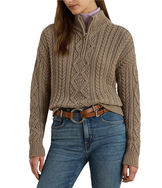 Lauren Ralph Lauren Knit Mock Neck Long Sleeve Quarter-Zip Pullover Sweater