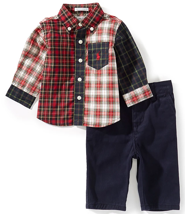 Ralph Lauren Baby Boys Plaid Long-Sleeve Woven Shirt & Corduroy Pants Set