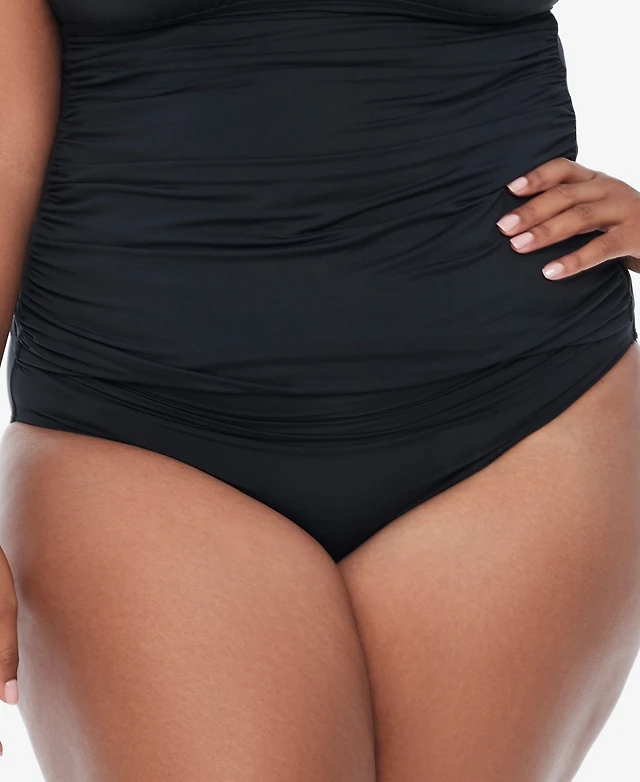 Lauren Ralph Plus Shirred High-Waist Swim Bottoms