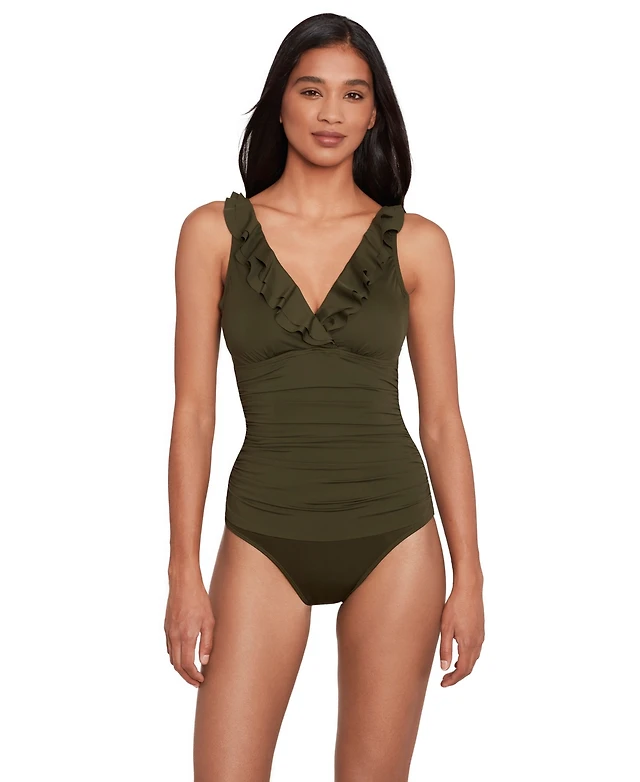 Lauren Ralph Lauren Ruffle Surplice One Piece Swimsuit