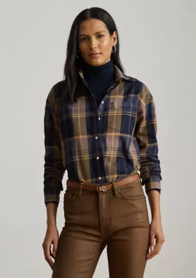 Plus Plaid Stretch Cotton Long Sleeve T-Shirt