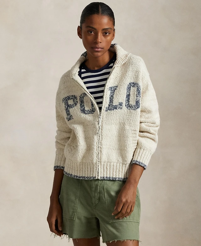 Polo Ralph Lauren Women's Cable-Knit Cotton Full-Zip Hoodie Sweatshirt