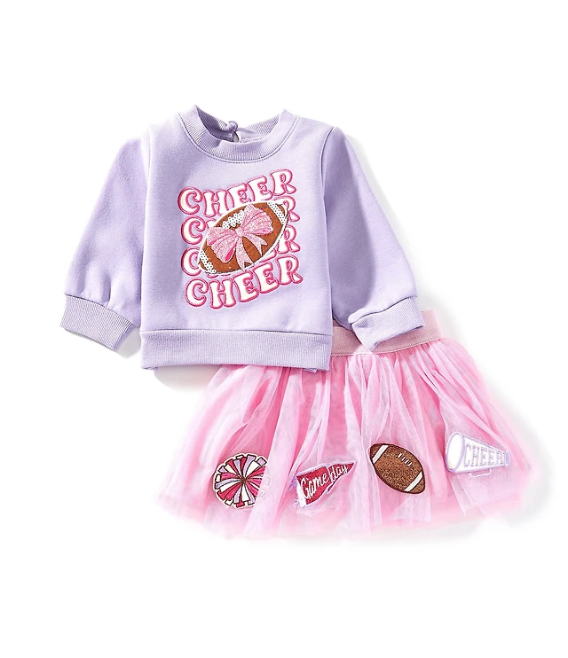 Rare Editions Little Girls Long-Sleeve Cheer French Terry Sweatshirt & Printed Mesh Tutu Skirt Set