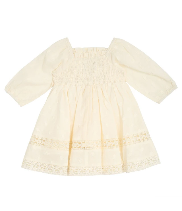 Rare Editions Big Girls Smocked Burnout Chiffon Long Sleeve Dress