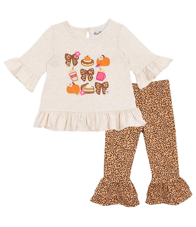Rare Editions Little Girls Long-Sleeve Fall Harvest Motif Tunic Top & Leopard-Printed Leggings Set
