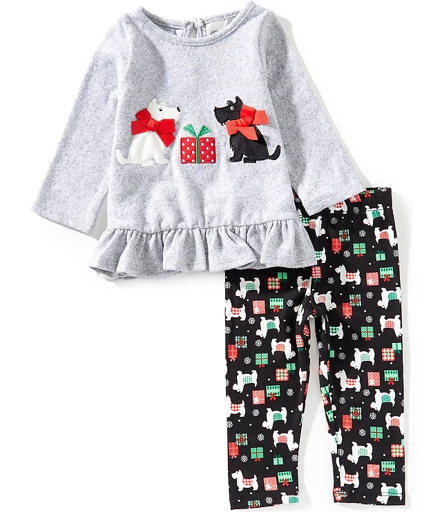 Rare Editions Baby Girls Long Sleeve Holiday Applique Top & Printed Legging 2-Piece Set