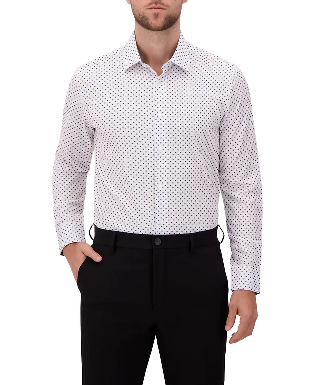 Report Collection Men's Long Sleeve 4-Way Dot Print Dress Shirt